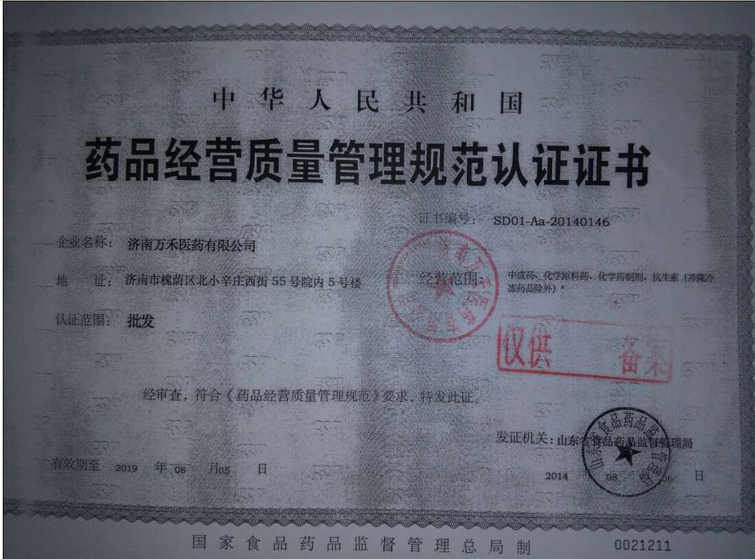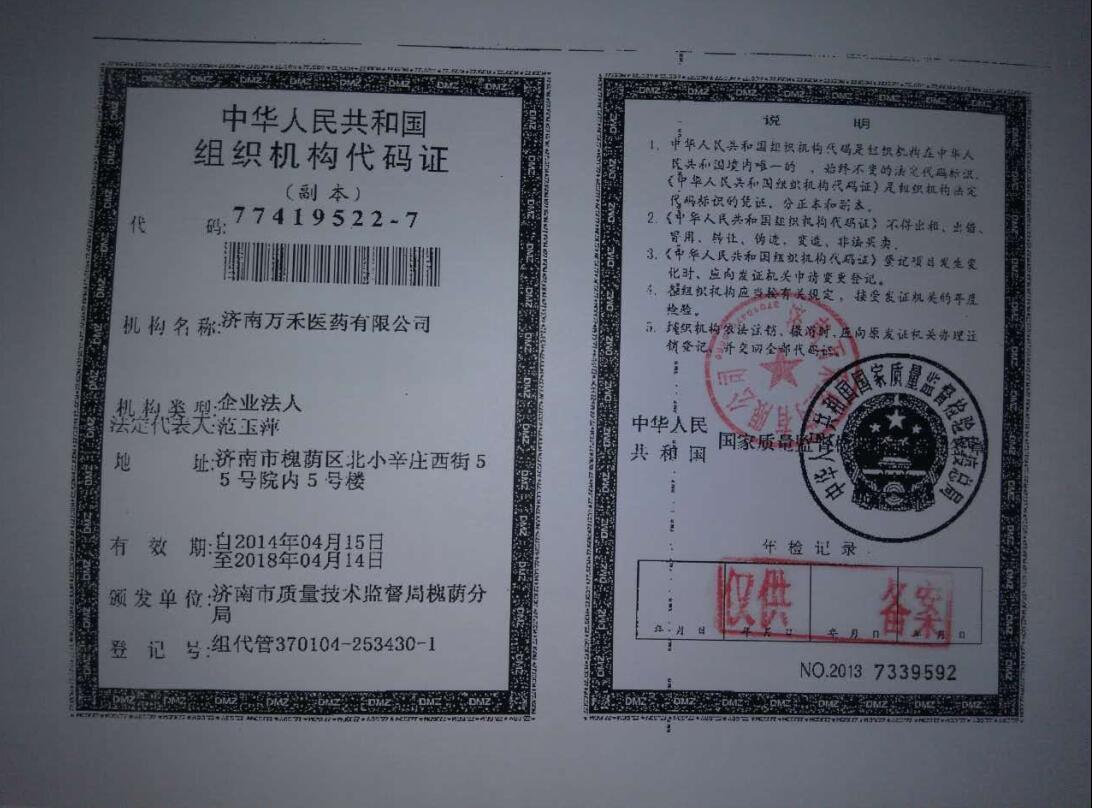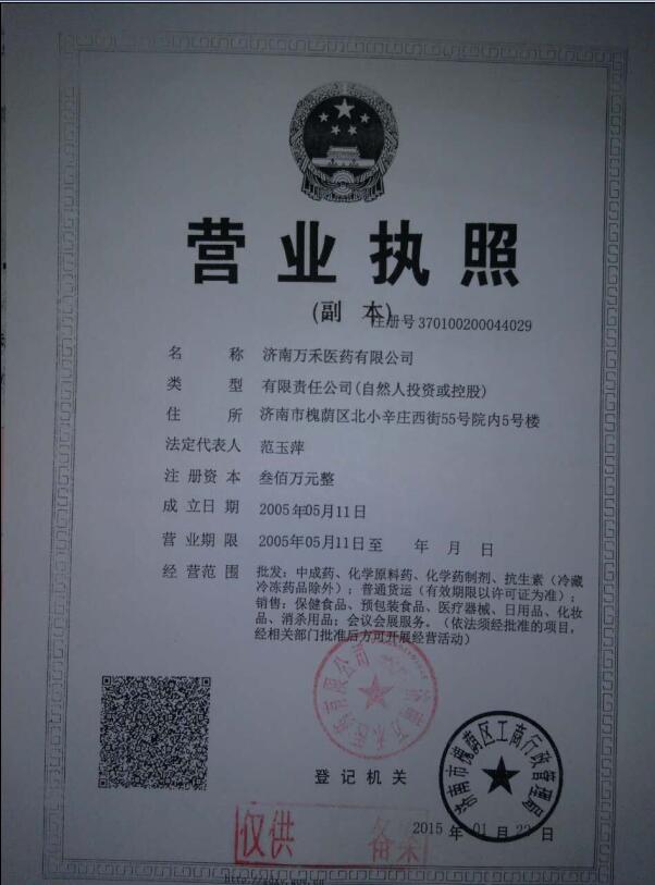濟(jì)南萬禾醫(yī)藥有限公司是專注于醫(yī)療/保健/美容/衛(wèi)生服務(wù)行業(yè)的民營企業(yè)公司,主要經(jīng)營批發(fā):中成藥、化學(xué)原料藥、化學(xué)藥制劑、抗生素(冷藏冷凍藥品除外);普通貨運(yùn);銷售:食品、醫(yī)療器械、日用品、化妝品、消殺用品、人體秤;會(huì)議及展覽服務(wù);市場(chǎng)營銷策劃;企業(yè)形象策劃;企業(yè)管理咨詢;醫(yī)療器械、醫(yī)藥技術(shù)的開發(fā)、技術(shù)轉(zhuǎn)讓、技術(shù)服務(wù)、技術(shù)推廣;市場(chǎng)調(diào)查;國內(nèi)廣告業(yè)務(wù);辦公設(shè)備租賃。(依法須經(jīng)批準(zhǔn)的項(xiàng)目,經(jīng)相關(guān)部門批準(zhǔn)后方可開展經(jīng)營活動(dòng))并通過國家工商管理局注冊(cè)成立的專業(yè)化的公司,成立于2005年05月11日,注冊(cè)資本600萬。公司坐落于濟(jì)南市槐蔭區(qū),以規(guī)范、專業(yè)、創(chuàng)新、共贏的經(jīng)營理念,高效貼心的服務(wù),團(tuán)結(jié)協(xié)作、敬業(yè)負(fù)責(zé)、服務(wù)奉獻(xiàn)、求實(shí)進(jìn)取的企業(yè)精神,始終貫徹以追求合作伙伴大利益為目標(biāo),竭誠為合作伙伴提供大程度的保障。