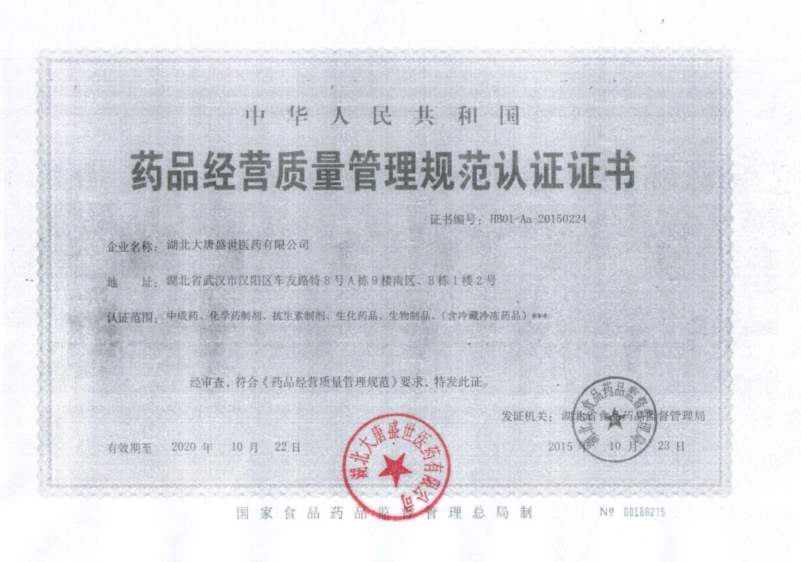 湖北大唐盛世醫(yī)藥有限公司座落于美麗的江城——武漢經(jīng)濟技術開發(fā)區(qū)海濱城路15號,公司成立于二零零五年三月,是按國家新標準成立的一家新型化、現(xiàn)代化的公司,并已通過新版GSP認證。擁有簡潔寬敞的辦公場所,下設質(zhì)管部、采購部、銷售部、招商部、財務部、儲運部、總經(jīng)辦等部門。公司**之八十員工都擁有相關藥類專業(yè)知識,通過培訓考核合格上崗,是一支年輕化,具有拼博進取精神的隊伍。
