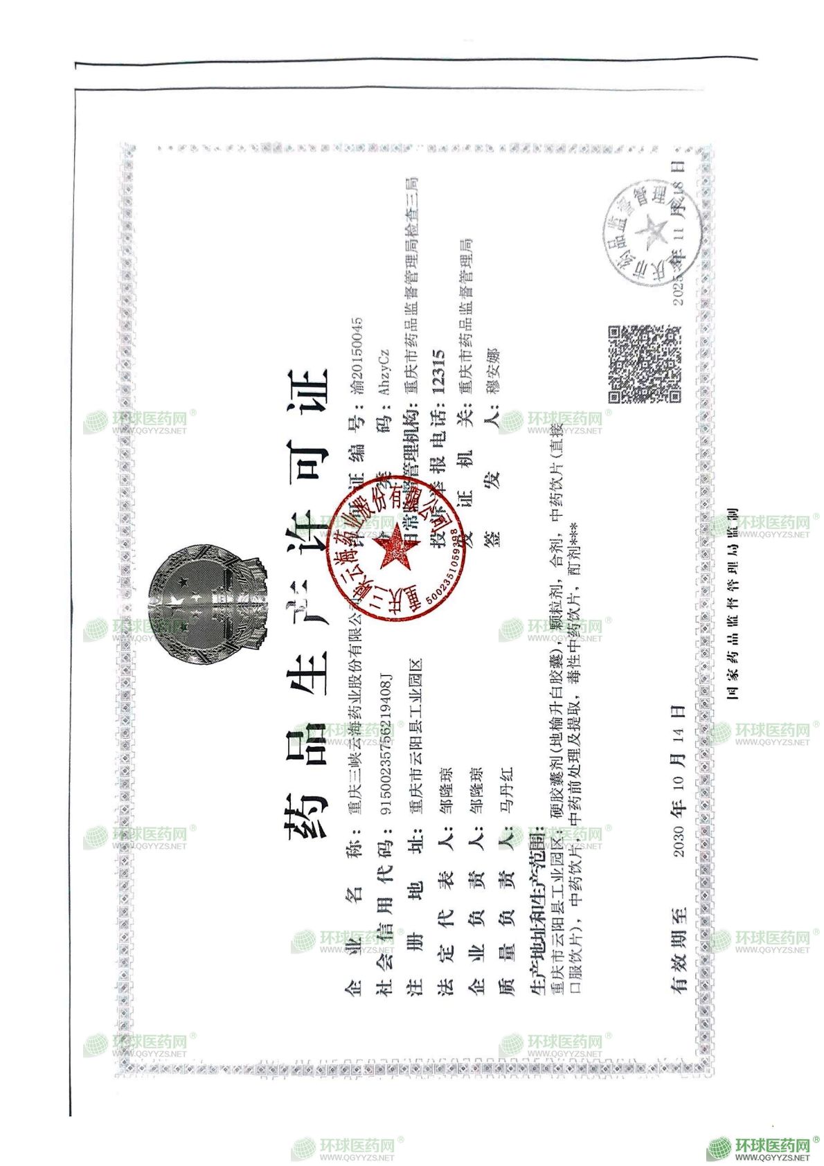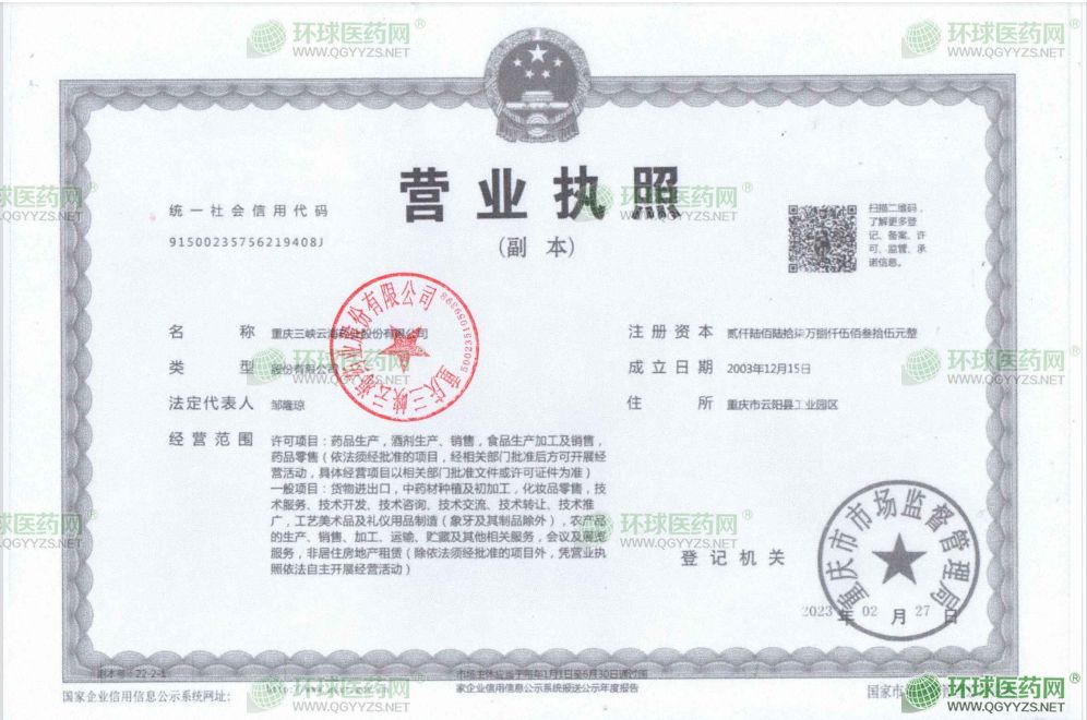 重慶三峽云海藥業(yè)股份有限公司
