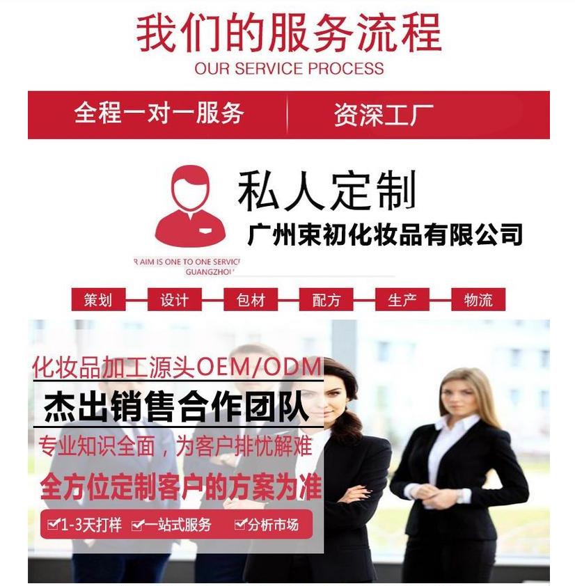 我司是成熟穩(wěn)定的化妝品工廠,有的研發(fā)實驗室,精密的設(shè)備,有**的導(dǎo)師對客戶做出而明晰的分析,配有團隊,進行深度**服務(wù),對產(chǎn)品進行深度而透徹的剖析,包括應(yīng)該研發(fā)什么新品,新品概念、核心特色、賣點提煉以及適合的渠道分析等等。確定研發(fā)什么產(chǎn)品之后,配有行業(yè)內(nèi)經(jīng)驗充足的人員,給予建議和方案,經(jīng)過協(xié)商和溝通后,確定產(chǎn)品架構(gòu),以及產(chǎn)品的包裝風格,以及單品和套裝的價格定位。
