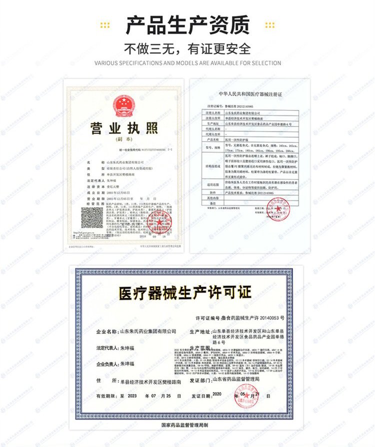 我們公司的防護服屬于二類醫(yī)療器械,證件齊全,比如FDA美國的注冊證書,EN1416歐標(biāo),東貝防護服是做二級防護服的,東貝的防護服抗?jié)B水性高,透濕量是8200,抗血液穿透性14千帕,拉伸力為**之115,過濾效率為99.94,東貝防護服的藍條增加了密封性面料為pp+pe。