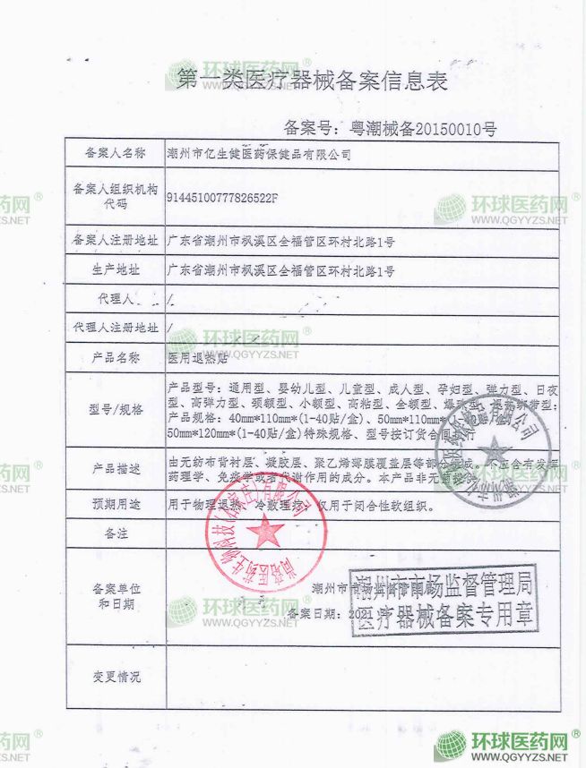 - 一類器械備案憑證