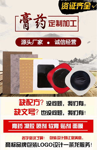 [主營(yíng)產(chǎn)品]:膏藥加工,膏藥貼牌,膏藥代理,膏藥代加工,保健食品,化妝品,防疫物資,醫(yī)療器械 更多>