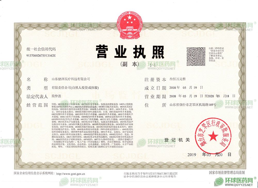 山東健澤醫(yī)療科技有限公司成立于2008年5月,座落于黃渤海交界處美麗的港城煙臺(tái),是一家專業(yè)從事醫(yī)療器械的