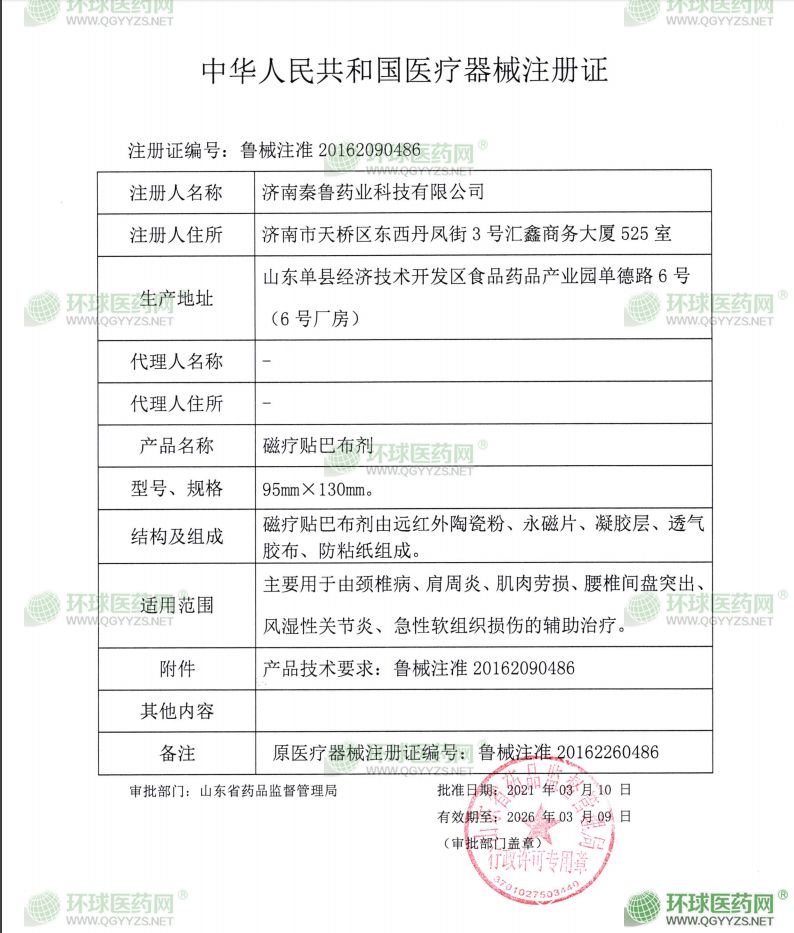 - 磁療貼注冊(cè)證