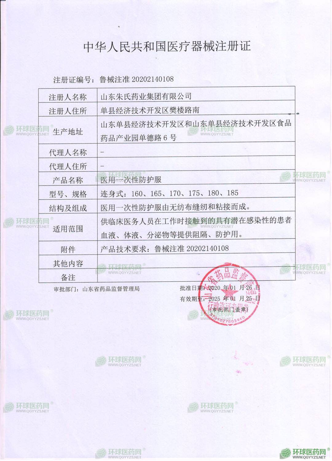 - 醫(yī)用防護(hù)服注冊(cè)證