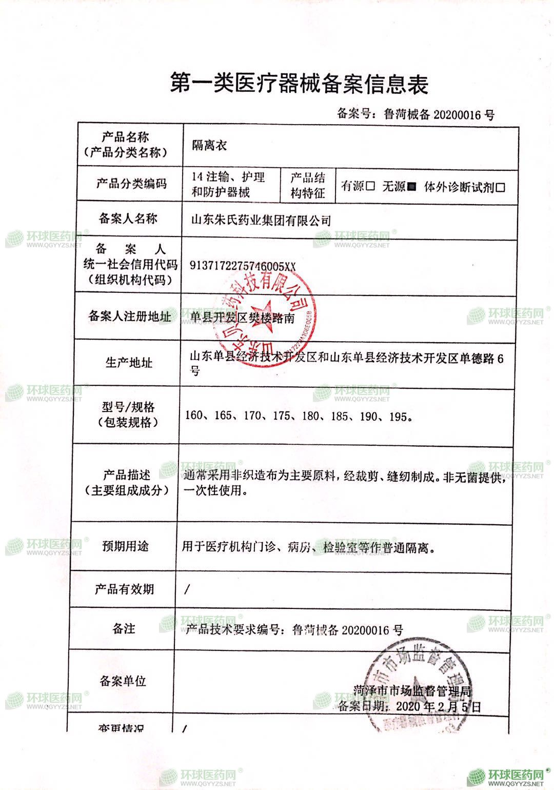 - 隔離衣注冊(cè)證