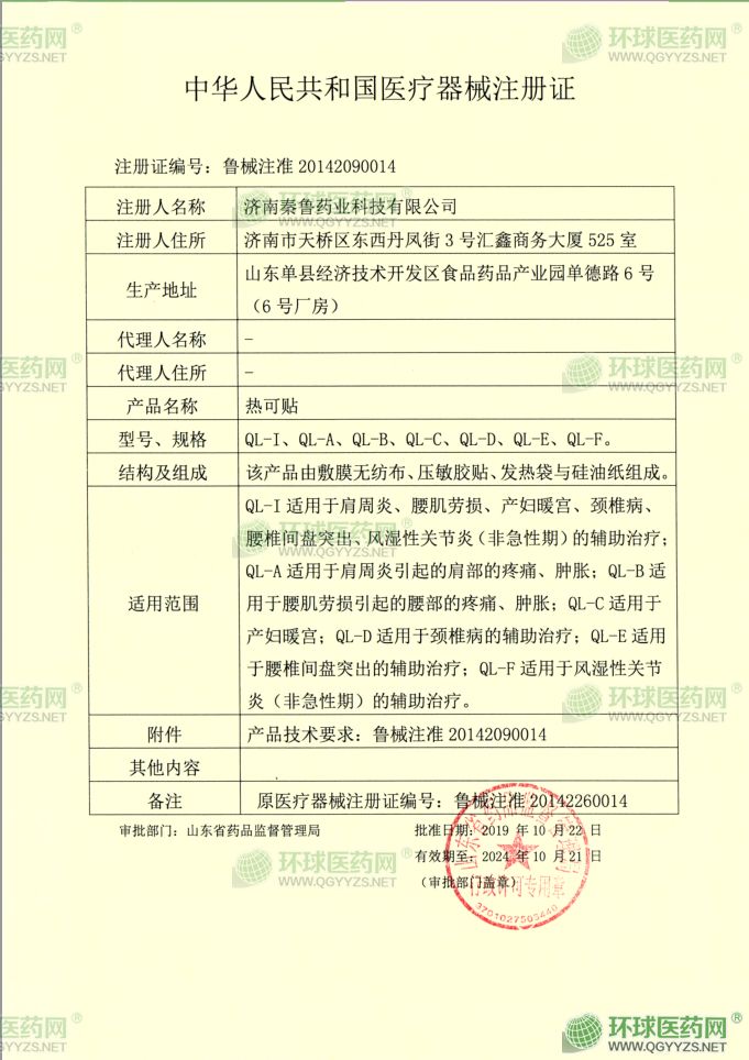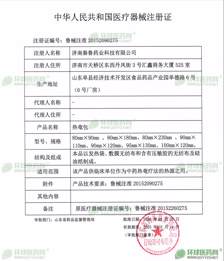 - 燙熨治療貼注冊(cè)證