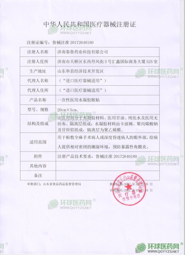 - 水凝膠眼貼注冊(cè)證