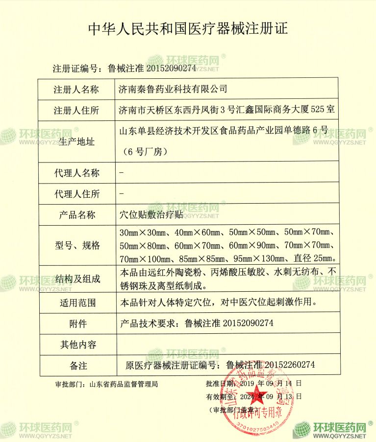 - 穴位貼敷治療貼注冊(cè)證
