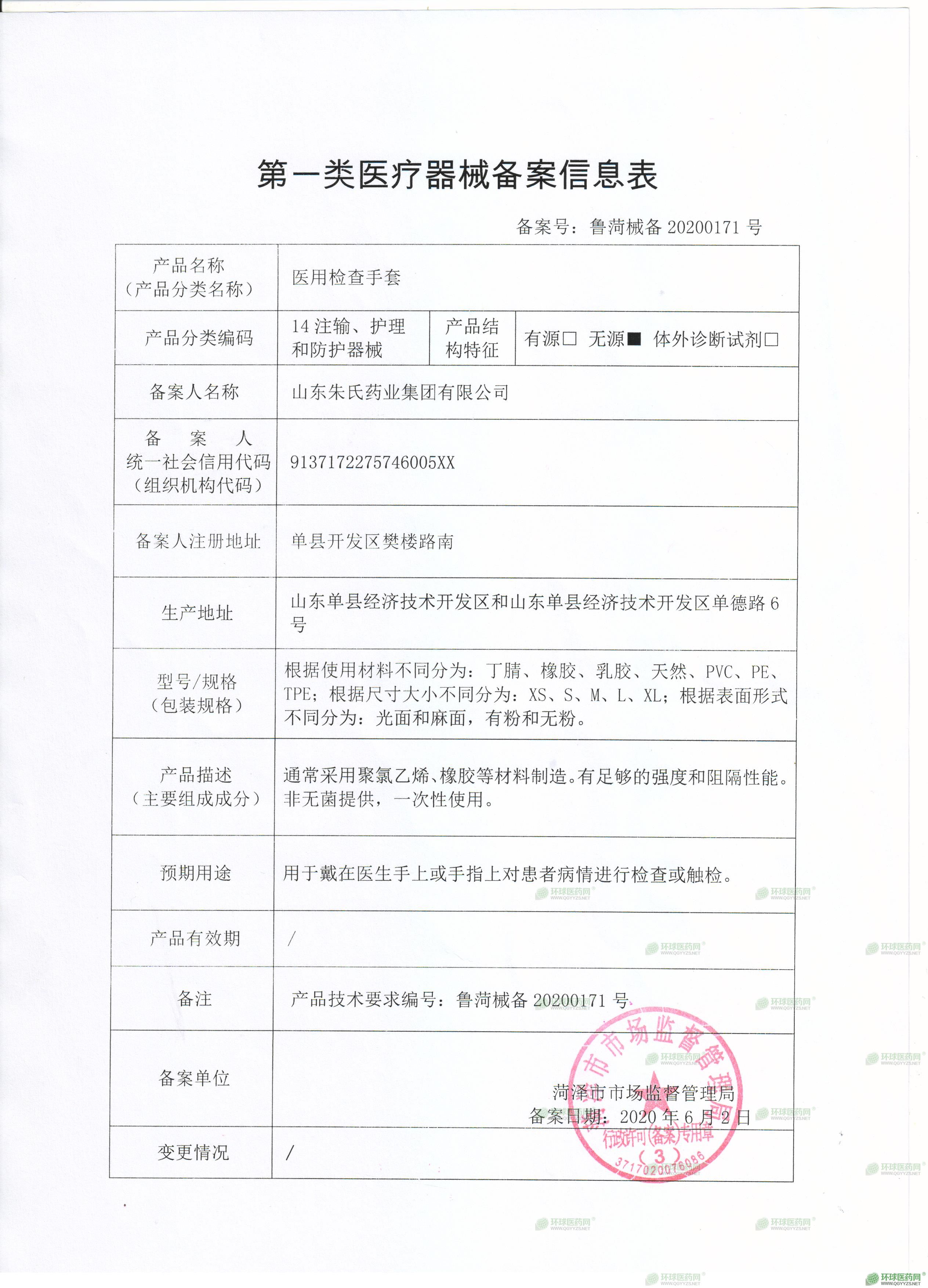 - 醫(yī)用檢查手套注冊(cè)證
