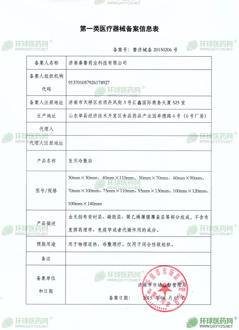 - 醫(yī)用冷敷貼注冊(cè)證
