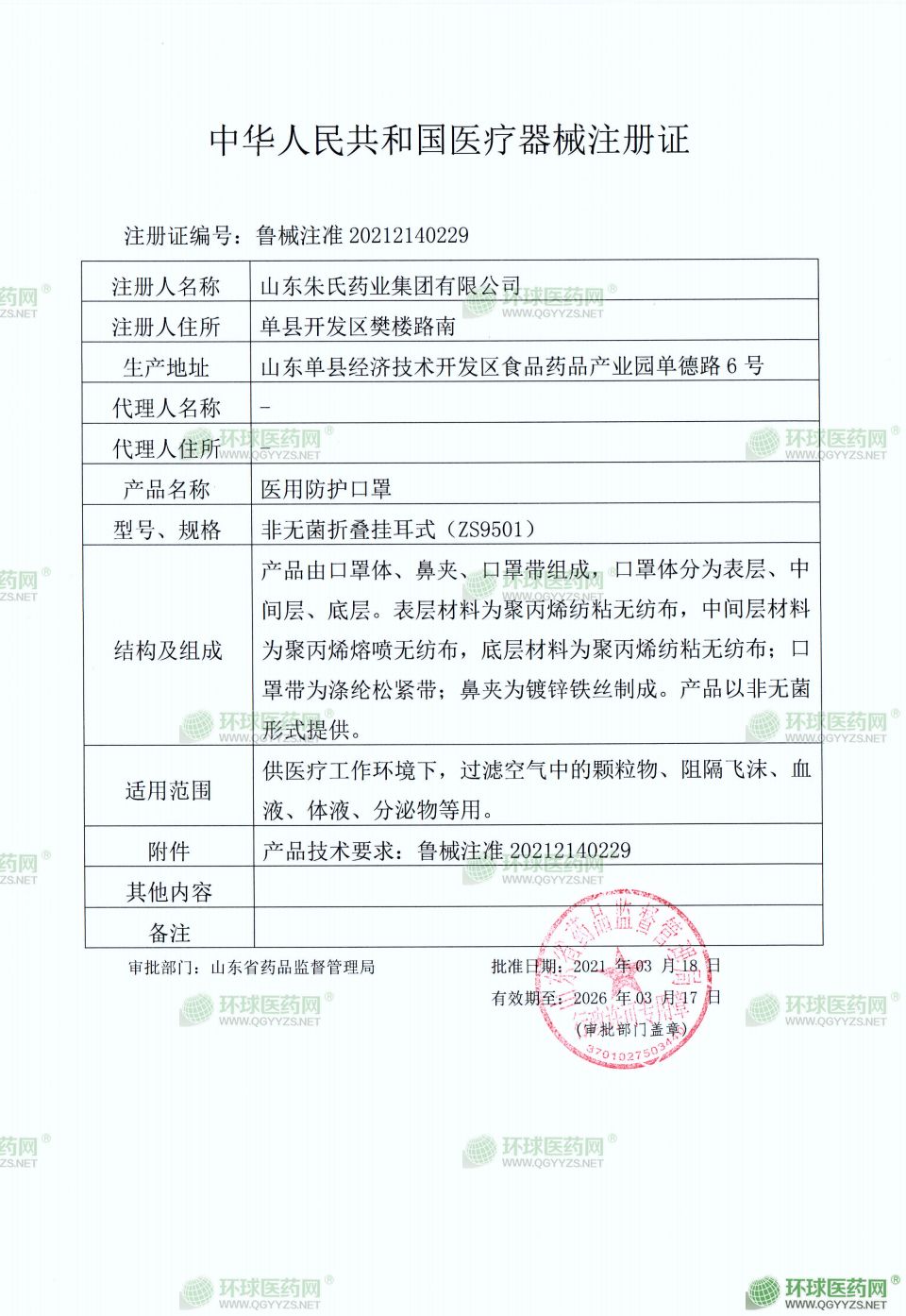 - 醫(yī)用外科口罩注冊(cè)證