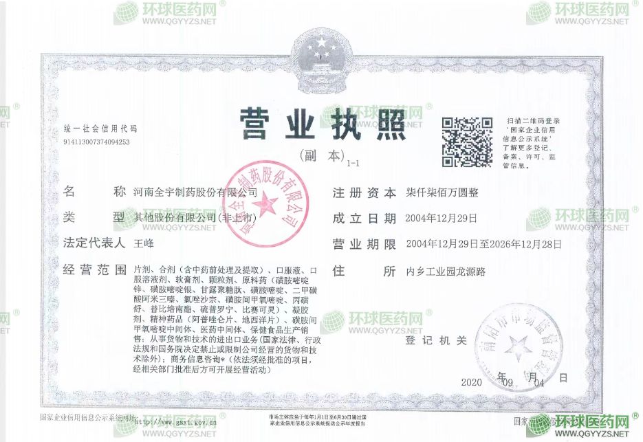 河南全宇制藥股份有限公司