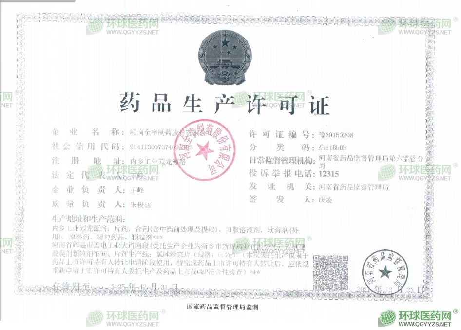2004年8月通過了藥品GMP認(rèn)證(不含甘露聚糖肽),取得了片劑、口服液、軟膏劑、原料藥(磺胺嘧啶鋅、磺胺嘧啶銀)、口服溶液劑型的認(rèn)證證書;2009年9月又通過了藥品GMP復(fù)認(rèn)證,證書編號:豫K0079。