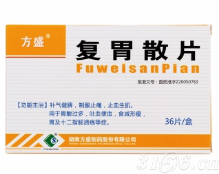 - 復(fù)胃散片 批準(zhǔn)文號(hào): 國藥準(zhǔn)字Z20050783規(guī) 格: 0.6g*36s/盒