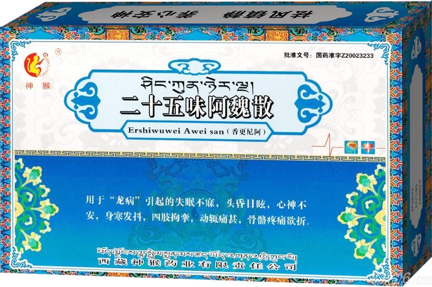 - 二十五味阿魏散 批準(zhǔn)文號(hào): 國(guó)藥準(zhǔn)字Z20023233規(guī) 格: 1.2g*6袋