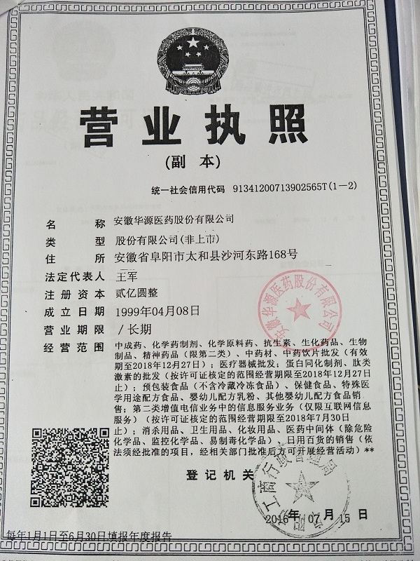 安徽華源醫(yī)藥集團股份有限公司