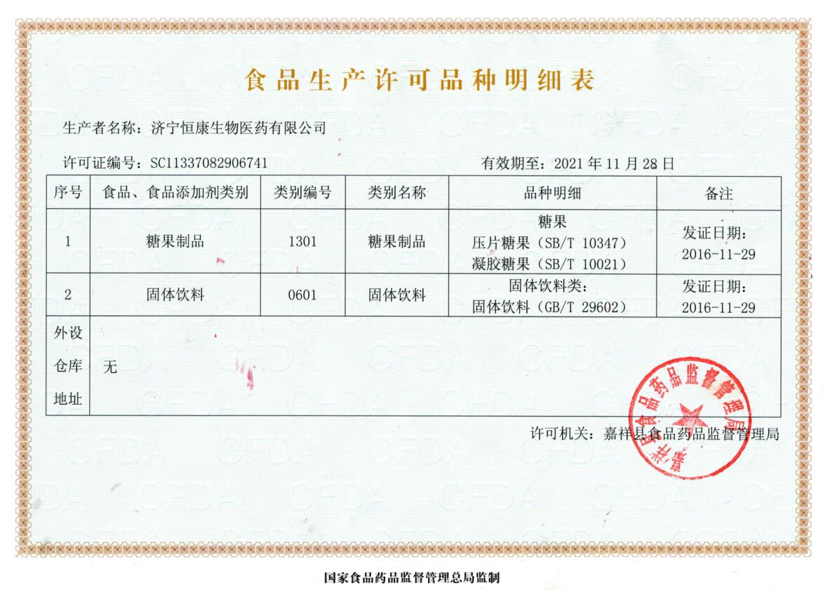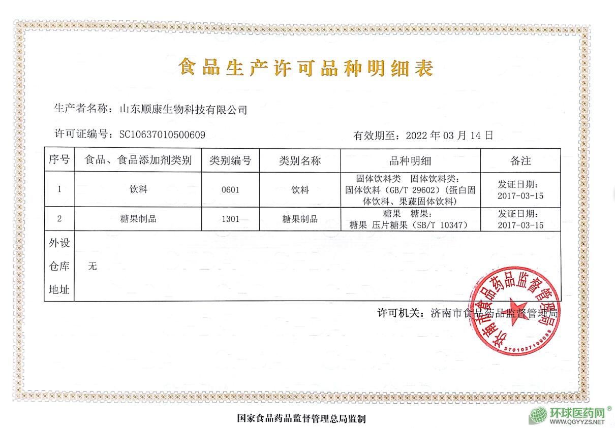 - 食品生產(chǎn)許可品種明細(xì)表(順康)