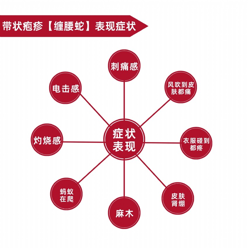 帶狀皰疹俗稱:龍纏腰、蛇串瘡、蛇盤瘡、纏腰蛇、生蛇、火龍丹、蜘蛛瘡等,各地名稱略有差異。