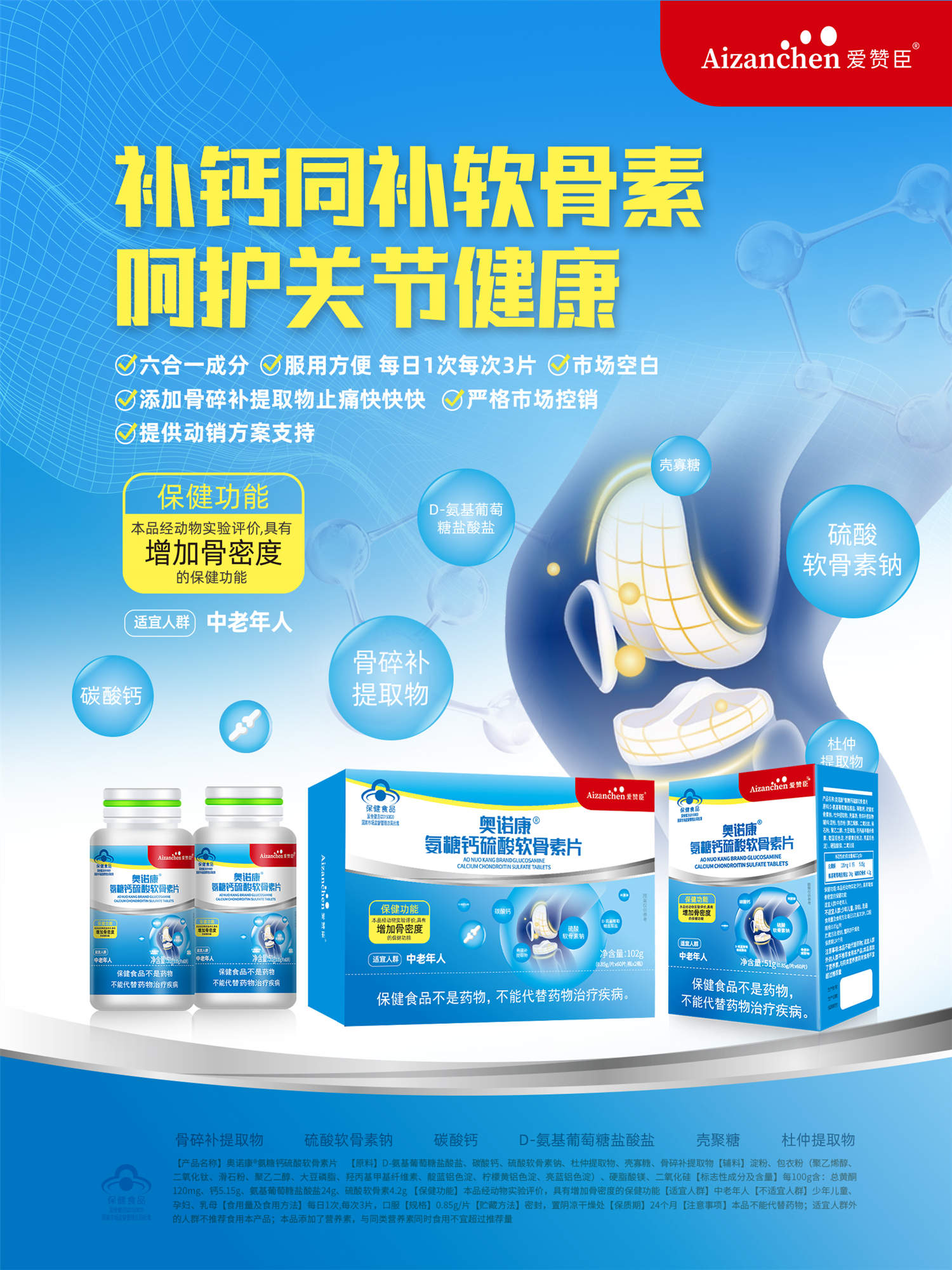 氨糖+鈣+硫酸軟骨素+杜仲提取物+殼寡糖+骨碎補提取物!