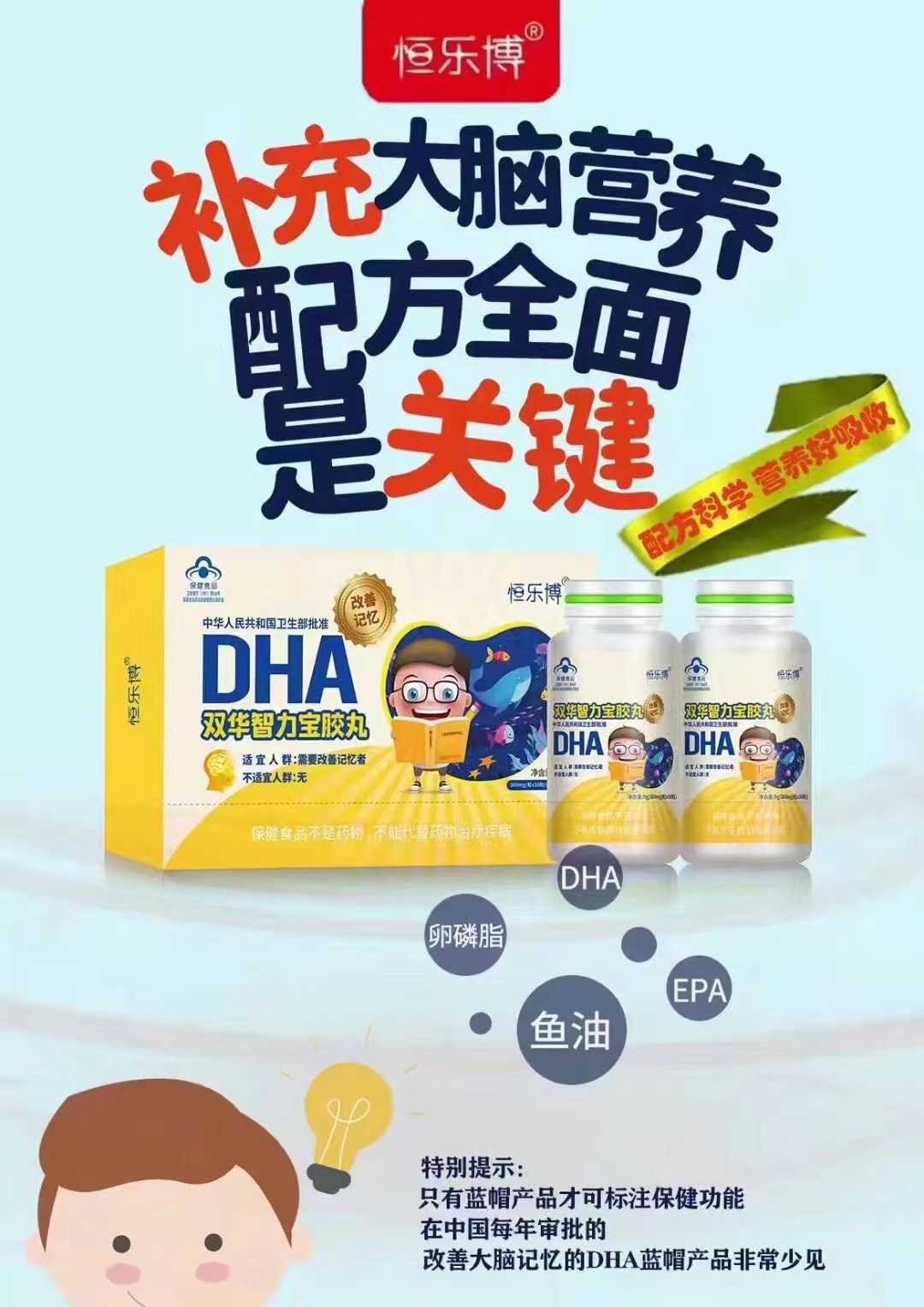 對嬰幼兒而言,補充DHA可以促進大腦和視力的發(fā)展和功能,提高視力敏銳度,提高認知能力;