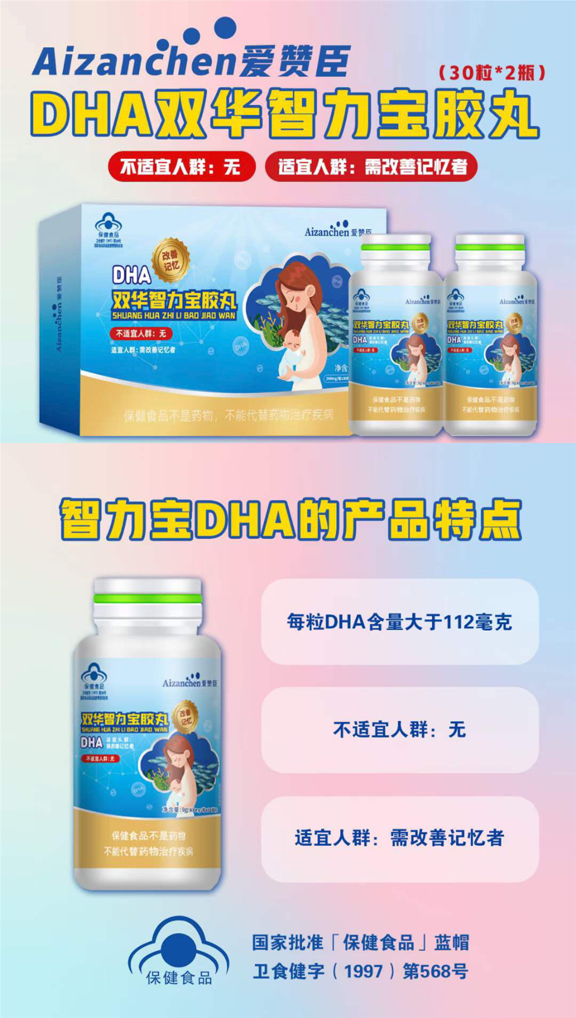 對孕婦而言,補充DHA可以促進孕期健康,增加母乳中DHA含量;