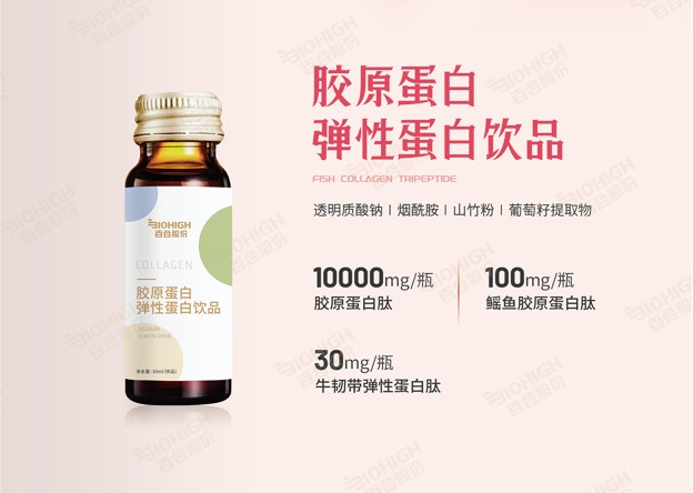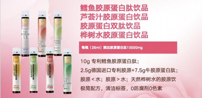 每瓶(50ml)添加膠原蛋白肽1200mg,膠原三肽600mg