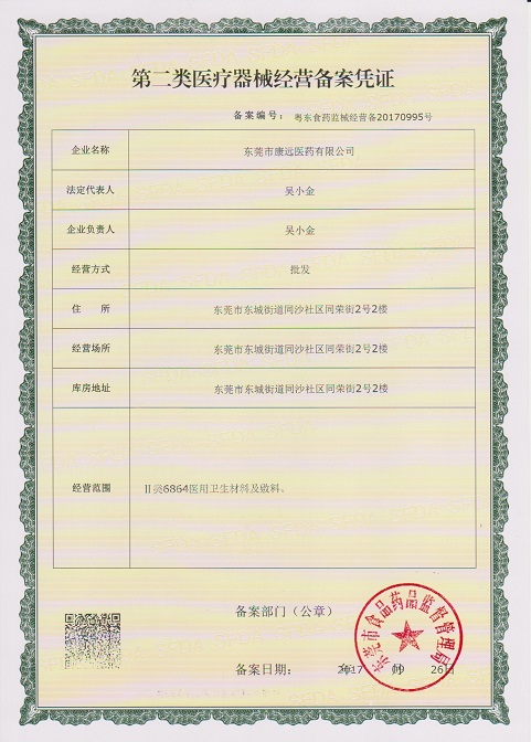 - 第二類醫(yī)療器械經(jīng)營備案憑證