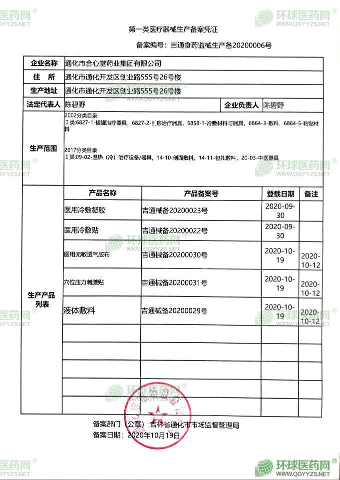 - 一類醫(yī)療器械備案憑證