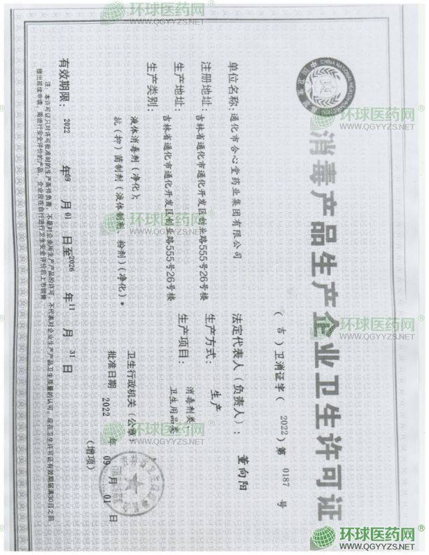 - 消毒產(chǎn)品生產(chǎn)企業(yè)衛(wèi)生許可證