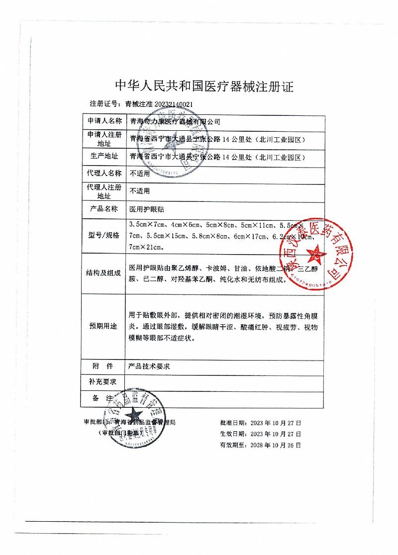 批準文號:青械注準20232140021