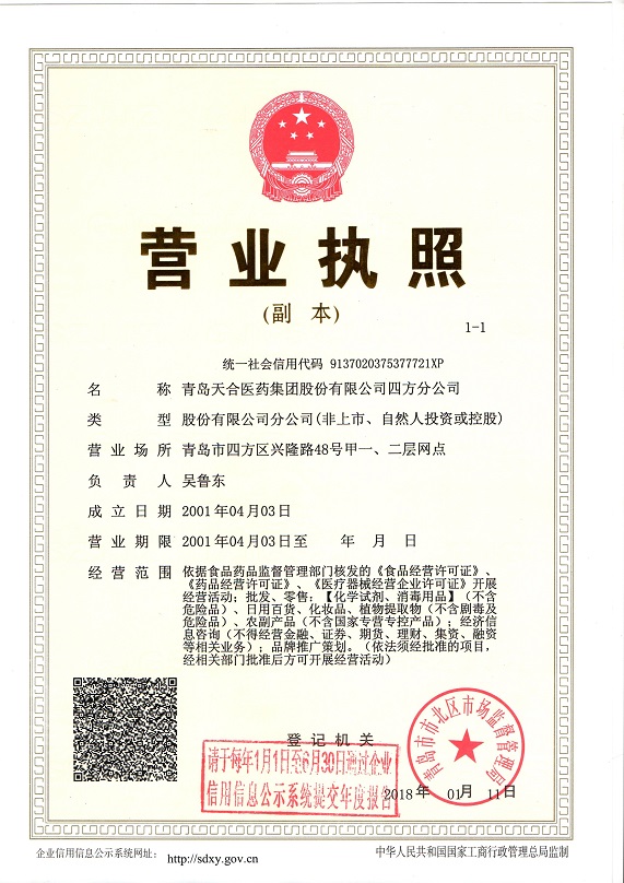 青島天合醫(yī)藥集團(tuán)股份有限公司四方分公司
