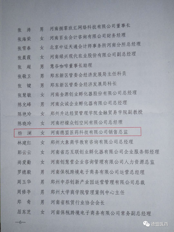 德盟醫(yī)藥銷售總監(jiān)楊瀾被鄭州市中小企業(yè)服務(wù)局評(píng)為鄭州市中小企業(yè)創(chuàng)業(yè)創(chuàng)新導(dǎo)師!