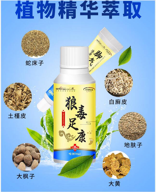 狼毒、皂角刺、七星劍、土茯苓、百癬皮、冰醋酸、冬青油、冰片、醋酸氯已定、凡士林、硬脂酸、三乙醇胺、甘油、薄荷腦是植物草本抑菌噴劑的主要配方。