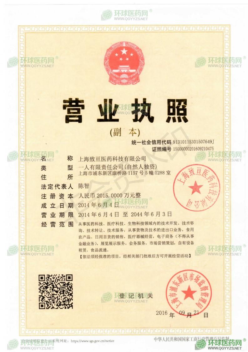 上海致亙醫(yī)藥科技有限公司