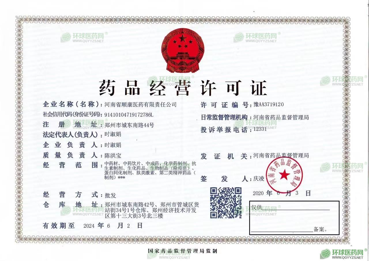 河南省順康醫(yī)藥有限責(zé)任公司成立于1998年,位于鄭州市管城回族區(qū)城東南路44號(hào),是河南省首批一次性通過(guò)國(guó)家GSP認(rèn)證企業(yè)之一,并于2009年一次性通過(guò)國(guó)家GSP達(dá)標(biāo)認(rèn)證復(fù)檢。是一家實(shí)力雄厚、規(guī)模宏大、專(zhuān)業(yè)度較高的經(jīng)營(yíng)企業(yè)。