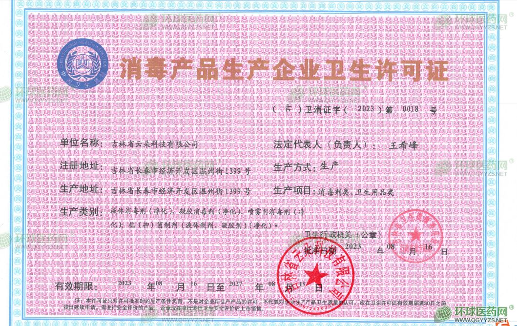 - 消毒產(chǎn)品生產(chǎn)企業(yè)衛(wèi)生許可證