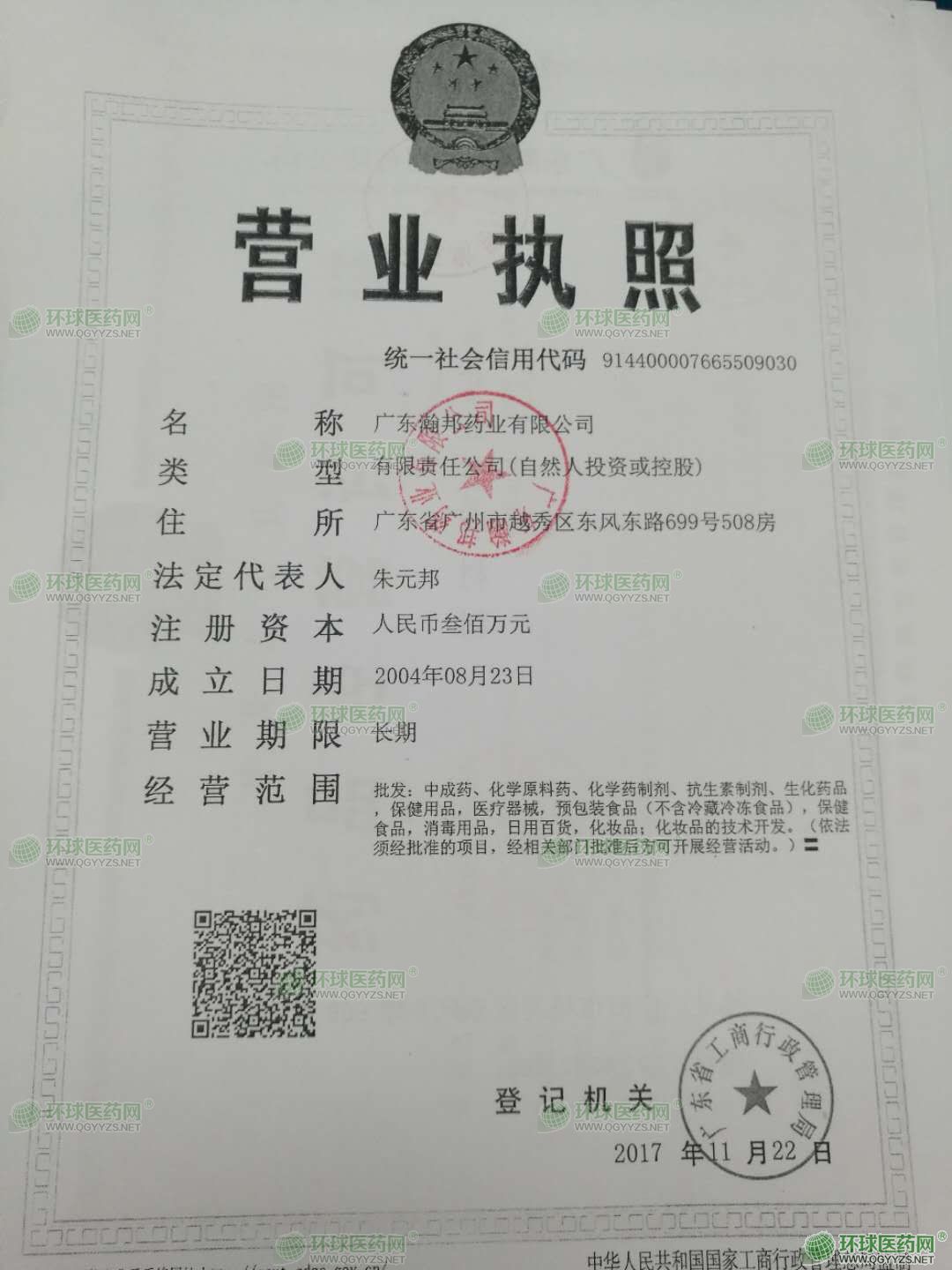 [企業(yè)法人]:廣東瀚邦藥業(yè)有限公司