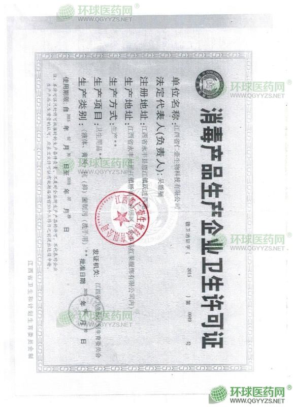 • 消毒產(chǎn)品生產(chǎn)企業(yè)衛(wèi)生許可證