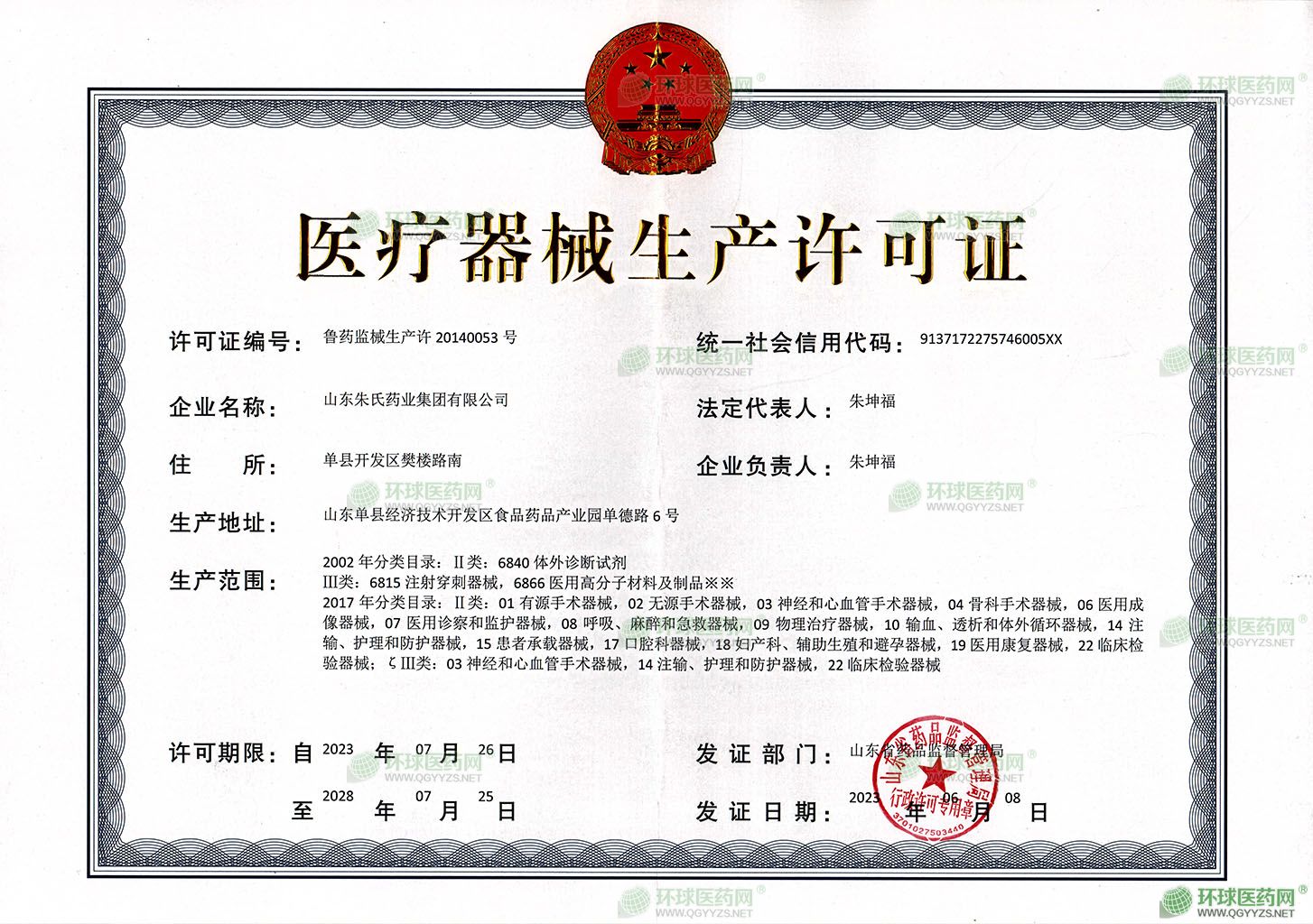 - 醫(yī)療器械生產(chǎn)許可證