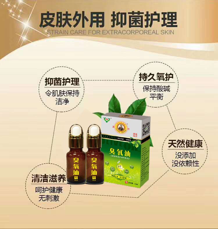 臭氧油能快速滲膚,有效抑菌。臭氧油是由***野生茶油結(jié)合臭氧技術(shù)研發(fā)而成,經(jīng)特殊工藝制成,濃度≥90g/L,嬰幼兒,孕婦,皆可使用!