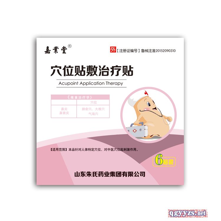 - 嘉業(yè)堂穴位貼敷治療貼(小兒鼻炎貼) 批準文號: 魯械注準20152090310規(guī) 格: 5cmX5cmX3貼X2袋/盒