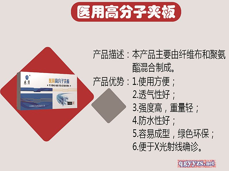 - 東貝醫(yī)用高分子夾板(骨科固定支撐夾板) 批準(zhǔn)文號(hào): 魯菏械備20140046號(hào)規(guī) 格: 可根據(jù)客戶需要定制