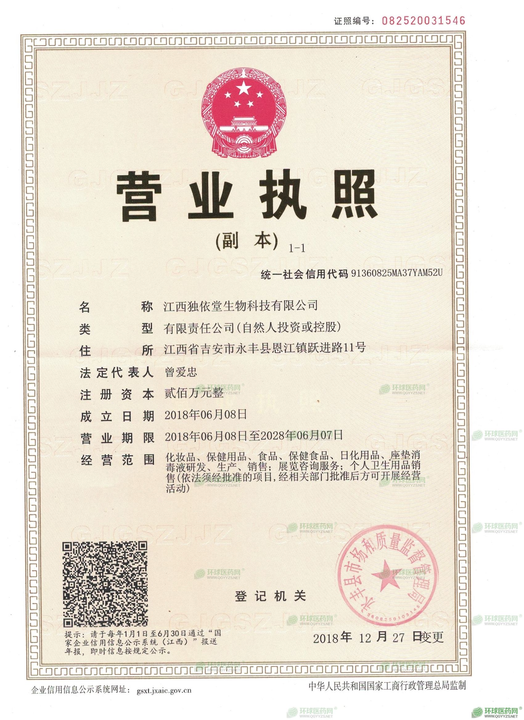 江西獨(dú)依堂生物科技有限公司成立于2018年,是一家以從事醫(yī)藥生物技術(shù)開(kāi)發(fā),醫(yī)用衛(wèi)生材料及敷料、消毒產(chǎn)品、衛(wèi)生用品、化妝品、皮膚粘膜衛(wèi)生用品、醫(yī)療器械、保健用品、保健食品等生產(chǎn)、銷(xiāo)售為一體的功能保健用品型公司