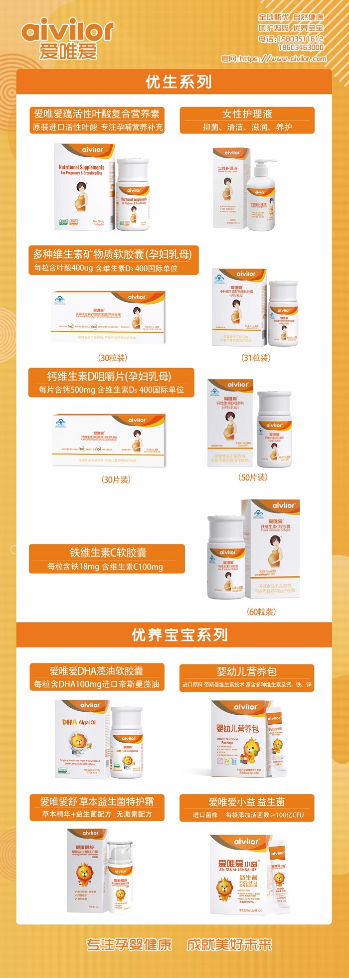 愛唯愛:孕婦乳母優(yōu)生系列活性葉酸,礦物質(zhì)軟膠囊,鈣咀嚼片,鐵維C軟膠囊等特殊膳食食品招商