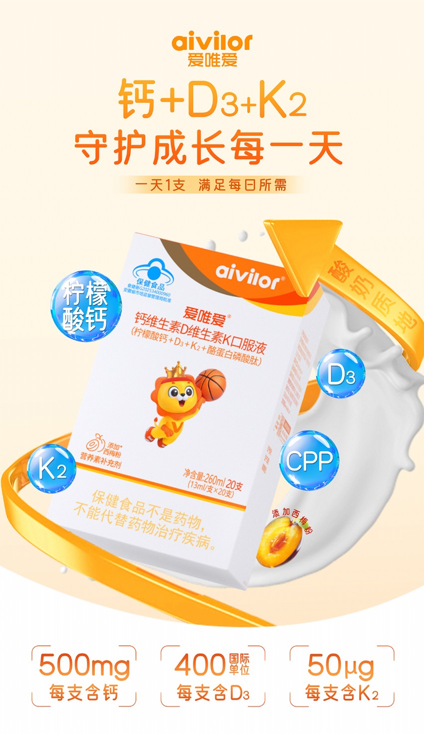 從“補(bǔ)得進(jìn)”到“留得住”|愛唯愛鈣維生素D維生素K口服液以液體小分子技術(shù)+酪蛋白磷酸肽,開啟補(bǔ)鈣3.