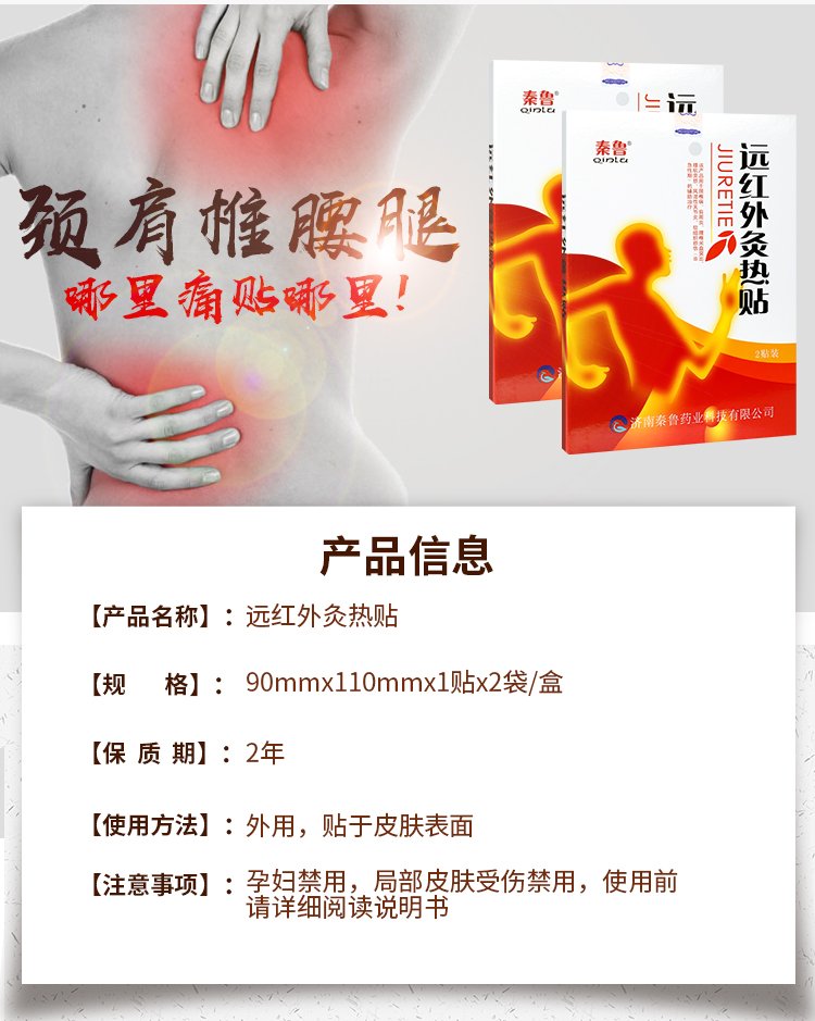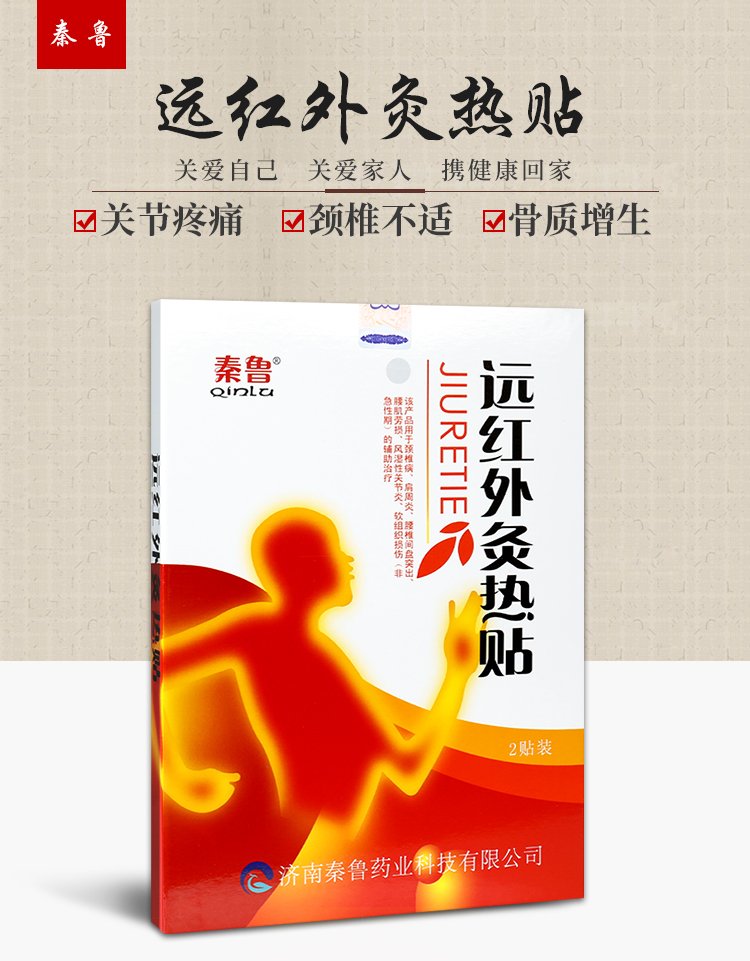 秦魯遠紅外灸熱貼由內(nèi)裝物和外袋組成,內(nèi)裝物由鐵粉、活性炭、硅藻土、鹽和水組成,外袋由敷膜無紡布和含有壓敏膠的無紡布及硅油紙制成,主要用于輔助治療一些疼痛性和腫脹性的病癥,例如肩周炎、腰椎間盤突出、頸型頸椎病、腰肌勞損、風(fēng)濕性關(guān)節(jié)炎(非急性期)等。