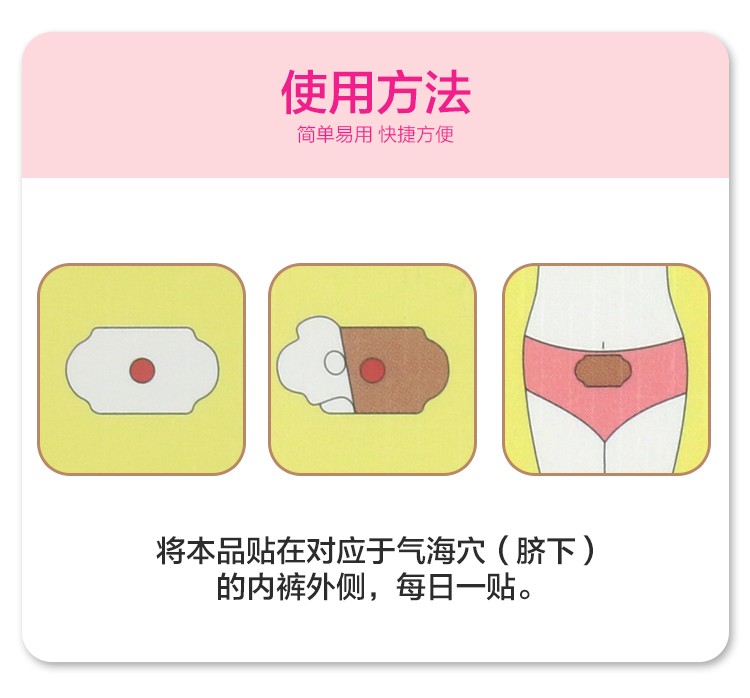 以下是暖宮貼的使用方法:清潔腹部:先用溫水清潔腹部皮膚,確保皮膚干凈和干燥。打開(kāi)包裝:將暖宮貼從包裝中取出,注意不要撕破貼片。粘貼位置:將暖宮貼粘貼在腹部下方,通常是在子宮位置的正中央,也可以根據(jù)個(gè)人感覺(jué)選擇適合的位置。注意貼合:貼上暖宮貼后,用手輕輕按壓使其與皮膚充分貼合,確保貼片不會(huì)松動(dòng)或滑落。避免過(guò)敏:如果你對(duì)貼片材料有過(guò)敏反應(yīng)或皮膚出現(xiàn)紅腫、瘙癢等不適癥狀,請(qǐng)及時(shí)停止使用。持續(xù)時(shí)間:根據(jù)產(chǎn)品說(shuō)明,一般暖宮貼可持續(xù)使用數(shù)小時(shí)到一整天,具體時(shí)間根據(jù)貼片的類(lèi)型和溫度設(shè)置而定。請(qǐng)注意,使用暖宮貼前*好先閱讀產(chǎn)品說(shuō)明,并在醫(yī)生或?qū)I(yè)人士的指導(dǎo)下使用,特別是對(duì)于有特殊健康狀況或存在過(guò)敏史的人群。