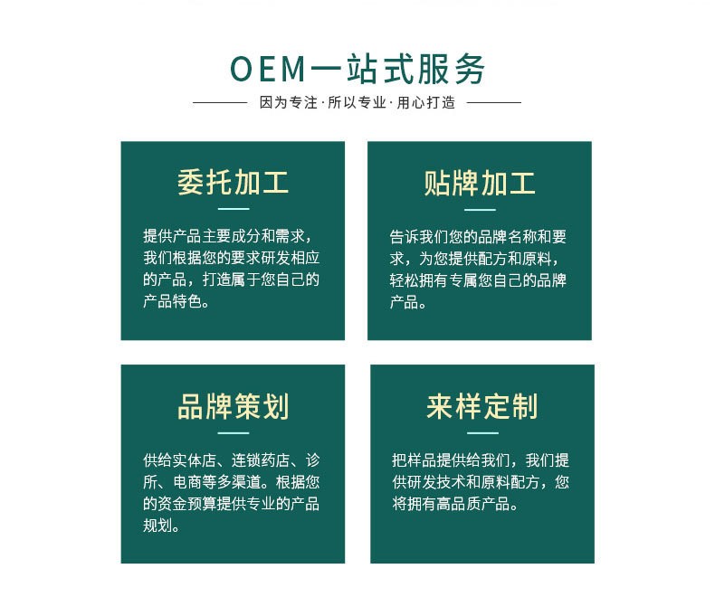 定制服務:我們提供個性化定制服務,根據(jù)客戶的需求和要求,量身打造符合市場需求的膏藥產品。